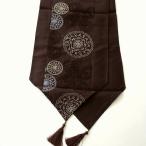 テーブルの上に敷くだけで お洒落な雰囲気になるランナーです タッセルが付いているのもポイント チェストやローボード、棚にも 花瓶敷きのように使うと お洒落な空間に早代わりです 上から、パッチワークを施したような 凝った折柄のランナー 大小のリングが 波紋のように広がるモダンな柄です 商品名 : テーブルランナー ブラウンサークル 商品番号 : kwb5931 全体のサイズ(cm) : 幅33・・・