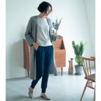 [トップス] (S)バスト110、ゆき丈60、身丈60cm (M)バスト114、ゆき丈62、身丈62cm (L)バスト118、ゆき丈64、身丈64cm (LL)バスト122、ゆき丈65、身丈64cm ●裾:両脇スリット ●後ろ:前より少し丈長 ●ポリエステル65%、綿35%(ミニ裏毛) [パンツ] (S)ウエスト56、ヒップ96、総丈95、股下67cm (M)ウエスト62、ヒップ102、総丈97・・・
